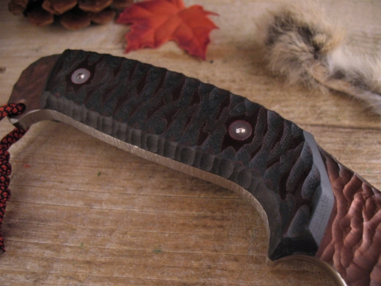 Hand Crafted from Thick .315 CPM M4 ~ the Blade has a Tested RC of 63 and the Spine has a Unique Hand Applied Flint Napped texture.