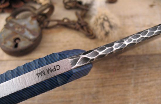 The CPM M4 Blade has an RC of approx 63 and an Abstract Textured / Heat Treated Finish and the Spine has a Unique Hand Applied Flint Napped texture.