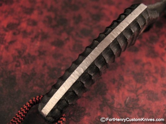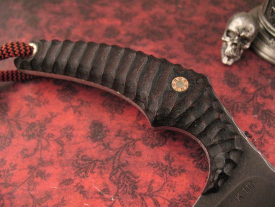 Thick Red & Black G-10 handle scales with Custom Texture Traction Ridges around the Perimeter. This will provide a sure grip even under other than ideal conditions.