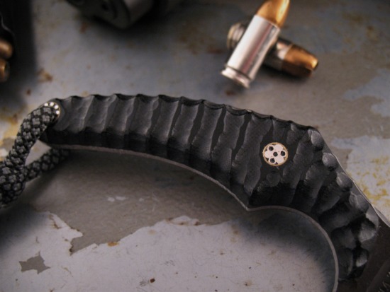 Thick G-10 handle scales with Custom Texture Traction Ridges around the Perimeter. This will provide a sure grip even under other than ideal conditions. A Cool Upgrade that Cobble has applied to this Example is a Mosaic Pin & Mosaic Lanyard Tube!