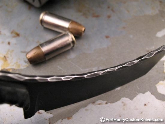 The Blade has a Dark Stonewashed Finish and the Spine has a Unique Hand Applied Flint Napped texture.