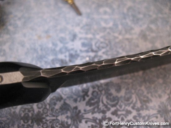 The Blade has a Dark Stonewash Finish and the Spine has a Unique Hand Applied Flint Napped texture.
