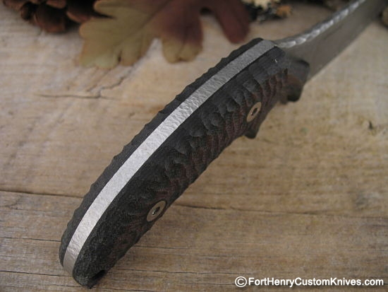 Thick Double Layer G-10 handle scales with Custom Traction Ridges around the Perimeter. This will provide a sure grip even under other than ideal conditions.