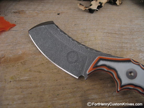 The Blade has a Dark Stonewashed Finish and the Spine has a Unique Hand Applied Flint Napped texture.
