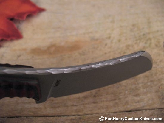 The Blade has a Uniform Bead Blasted Finish and the Spine has a Unique Hand Applied Flint Napped texture.