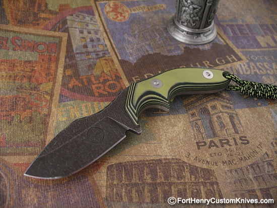 Thick Dual Color Toxic Green & Black G-10 handle scales with Perimeter Traction Grooves to channel Dirt and Moisture away from the middle of the handle. This will provide a sure grip even under other than ideal conditions.