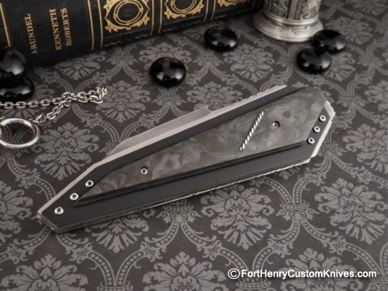 The unique handle Multi Overlay is Marble Carbon Fiber on top of G-10 on Titanium.