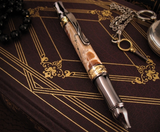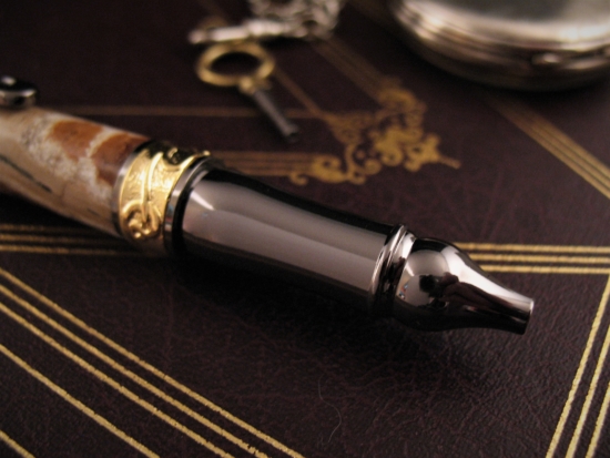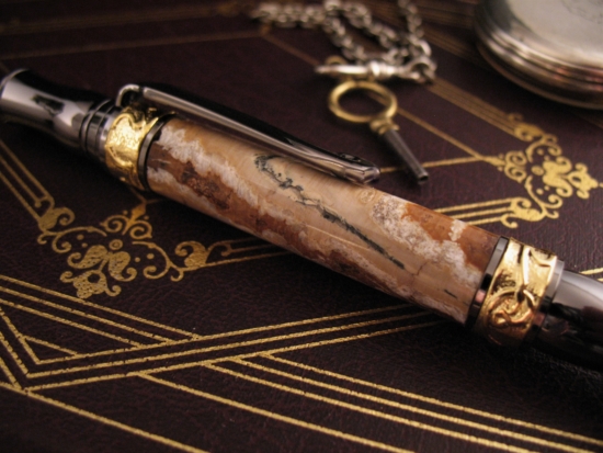 Courtney Turnage has been working with his father Charles (who is a well known Dealer in Mammoth Tooth and Mammoth Bone) and has recently taken his talent for jewelry making in a new direction. I feel that his New Pen creations represent some of the finest Custom Writing Instruments that are available on the market. Watch here in coming weeks for more examples of these beautiful pens!