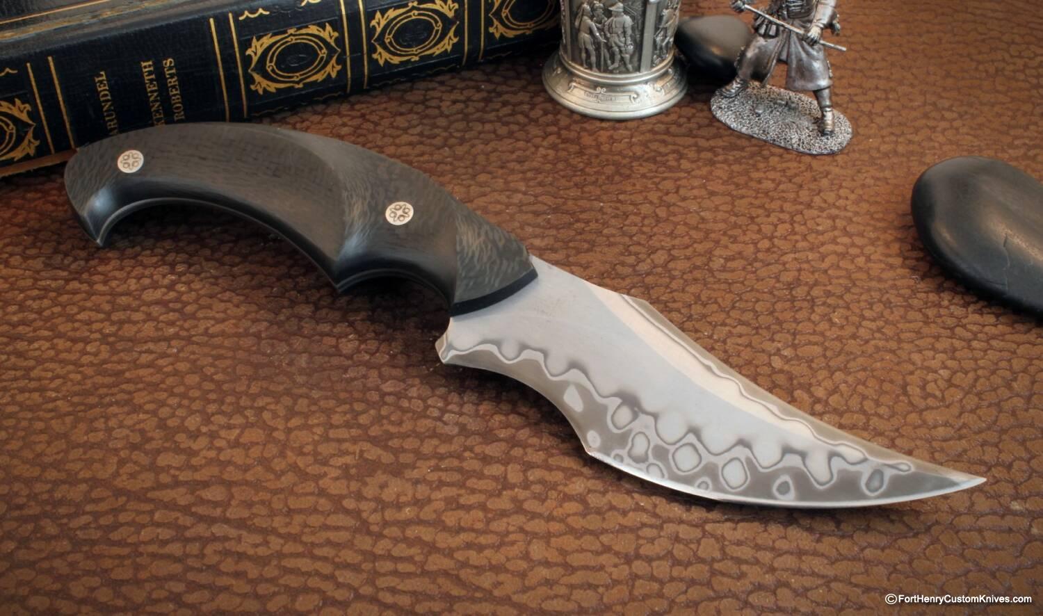 This is Claudio’s distinctive Snake / Recurve Fighter ~ an artistic, Sole Authorship knife with Amazing attributes and Hand Filling Contours