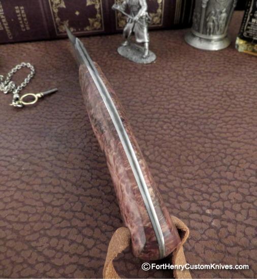 This is a Full Tang knife with Custom Contoured Handle scales of Stabilized Maple Burl