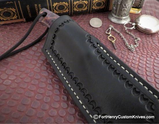 This knife comes in a Matching Custom Leather Pocket or Over the Pants Sheath also made by Joshua