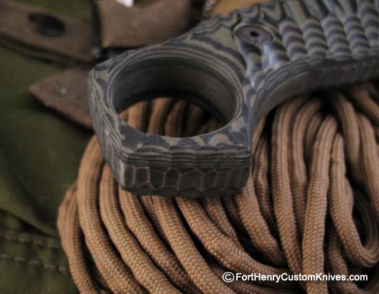 Though the Hand fits comfortably within the Curves of the Custom Designed Handle, this model also has a Keramibt Style Hole for Fast Indexing and the Butt of the Handle has Flattened Edges for Thumb Placement if the knife is held in the Reverse Position ~ or they may serve as a Skull Crusher Pommel.