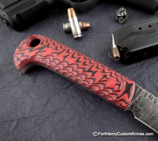 This Black Roc Boba Fett was Hand Crafted with Thick Black & Red G-10 handle scales that have a Three Dimensional Carving and Perimeter Traction Grooves to channel Dirt and Moisture away from the middle of the handle. The Integrated Birds Beak Butt provides Extreme Security and Control.