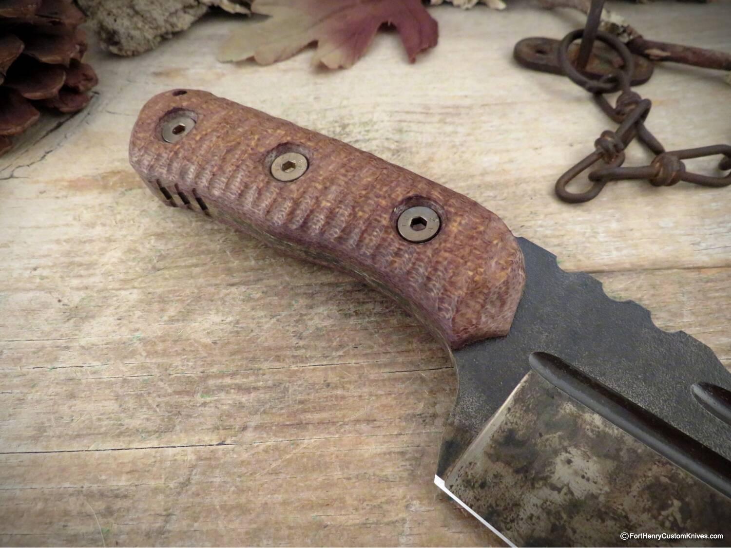 The Sculpted Micarta Handle Scales provides maximum strength with Traction Ridges to channel Dirt and Liquid around the entire Perimeter. The A2 Screws are Heat Anodized.