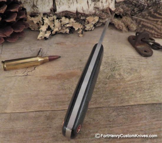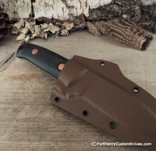 Dan pulled Black Canvas Micarta for this knife and the Copper hardware really makes the handle material Pop.