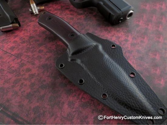 This is a Tough, Full Tang knife with wonderful handle to blade ratio and the Burgandy Micarta handle is generous in length and fills the palm.