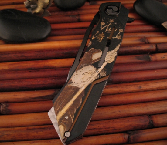Dew Hara grew up helping his famous Knife Maker Father, Koji Hara. Koji and Dew are known World Wide for their Art knives with detailed Hand Work and fine Materials.