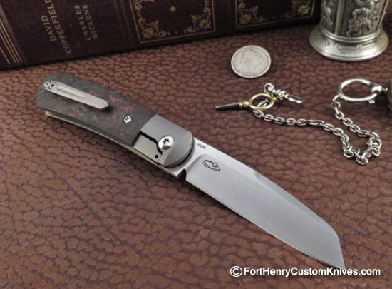 This Limited Edition version incorporates both the Patented Lee Williams “Kickstop” Flipper Tab opening mechanism AND some exciting Molten Lava Carbon Fiber from Fat Carbon