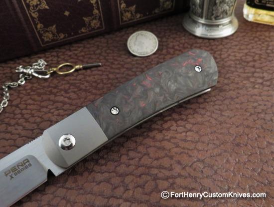This Limited Edition version incorporates both the Patented Lee Williams “Kickstop” Flipper Tab opening mechanism AND some exciting Molten Lava Carbon Fiber from Fat Carbon