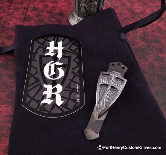 This is a custom Three Hole, XL Silver Crusader Cross Clip by Derrick Obatake of Steel Flame