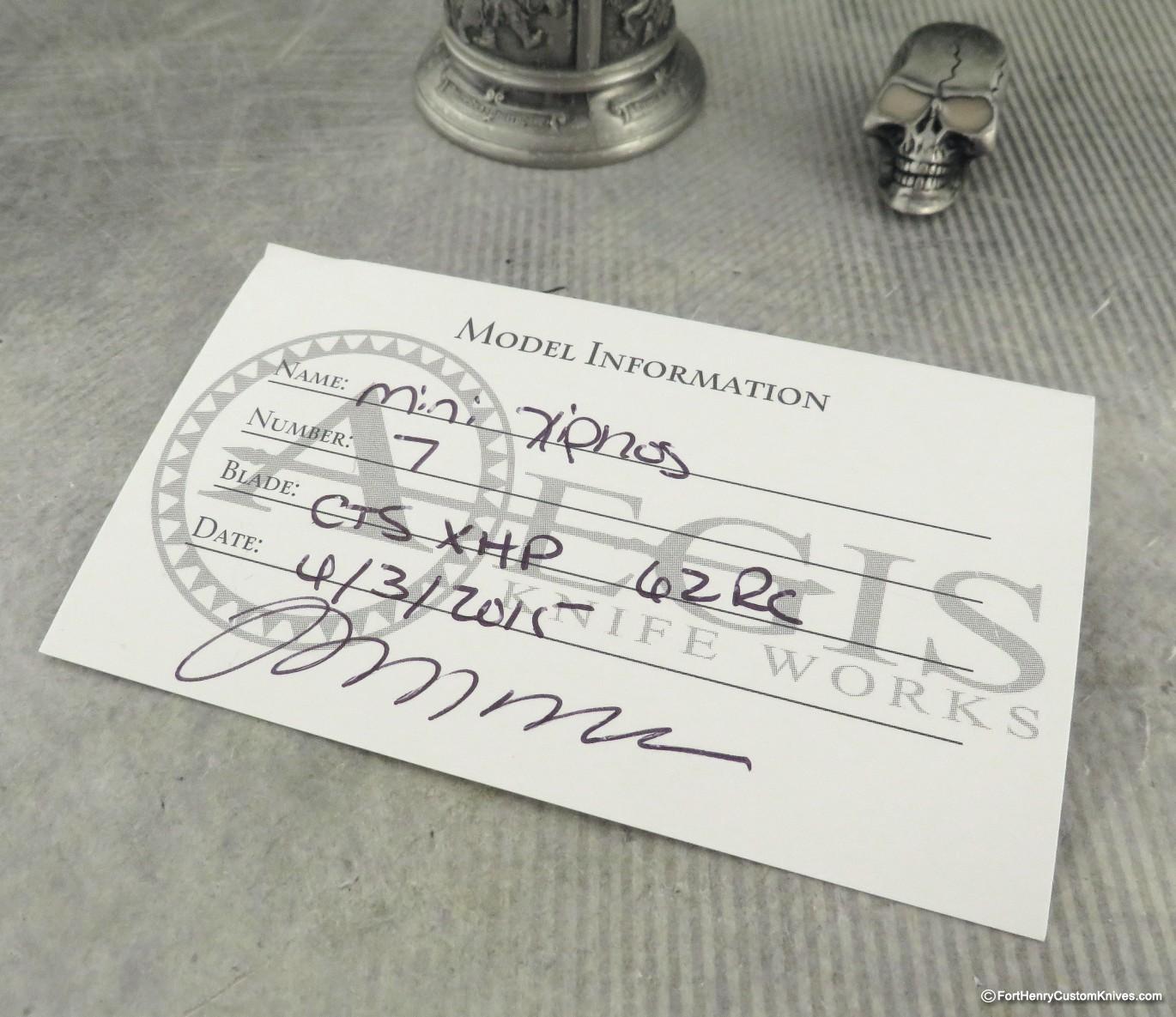 This Aegis Mini Xiphos has a stonewashed, CTS-XHP, hollow ground, drop point blade