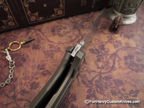 Opened using he Unique Right Hand Thumb Stud, Extremely Smooth Action due to the Internal Caged Bearing system. This example also has Beautiful Copper Flake Carbon Fiber Inlays that sparkle when they catch the light.