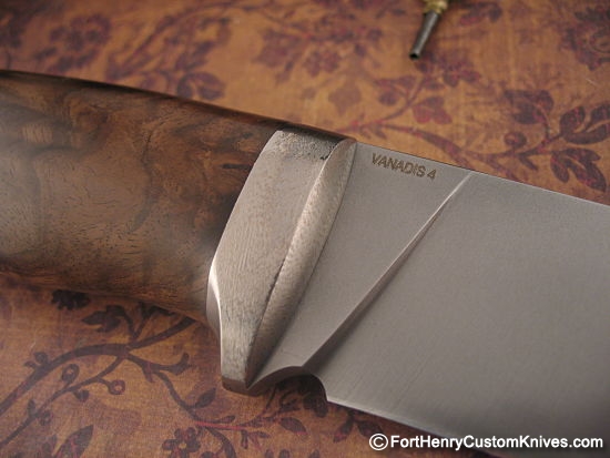 The Vanadis 4 blade has a Fine Distal Taper and an extremely clean, Uniform High Stonewashed type of finish with Stippled Titanium Ferrule.