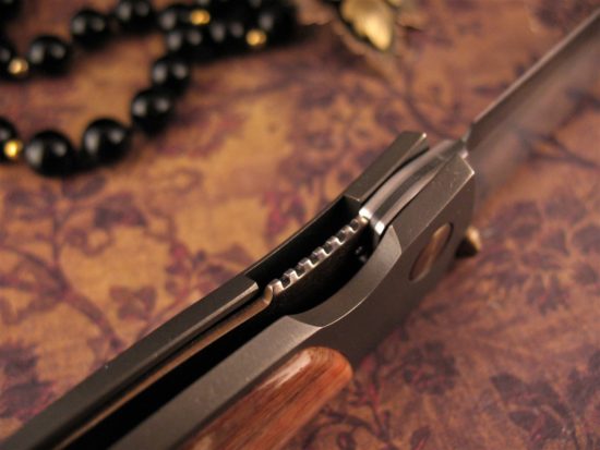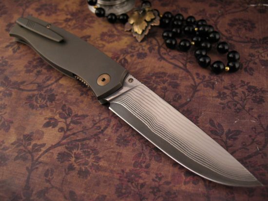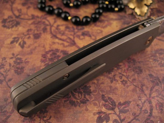 The Thick Titanium Liner Locks up Early and extremely Secure and has a Custom Bronze Anodizing.