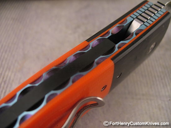 Fully Fileworked and Anodized Ti Liners with a Black G10 backspacer.