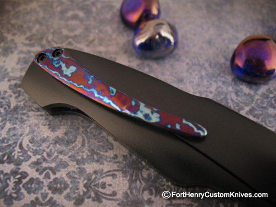 Anton Mirror Polished the Titanium Scales and then coated them with Tough Black Cerakote. He also gave this example matching Timascus Pivot Collars.