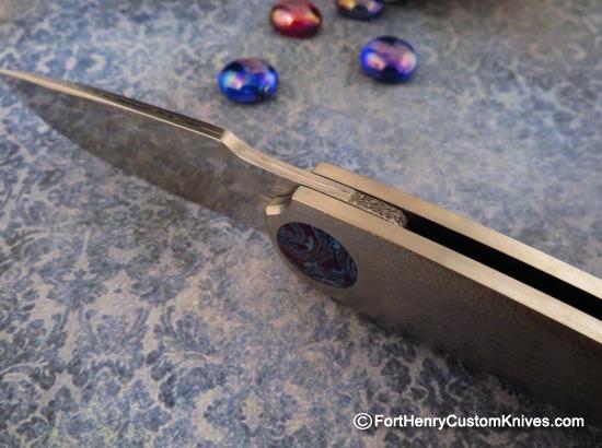 Anton had to Hand Texture the Titanium Scales and then he polished them to create this wonderful finish. He also gave this special piece a Hidden Pivot with Timascus Pivot Cover.