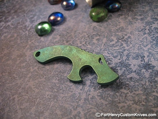 This is Michael’s latest creative endeavor, crafted from a solid piece of 6AL4V Titanium and designed to resemble his well known Makers Mark Snake Head symbol. Call it a Cap Lifter, Bottle Opener, Pry Tool, or Keychain Conversation Piece.