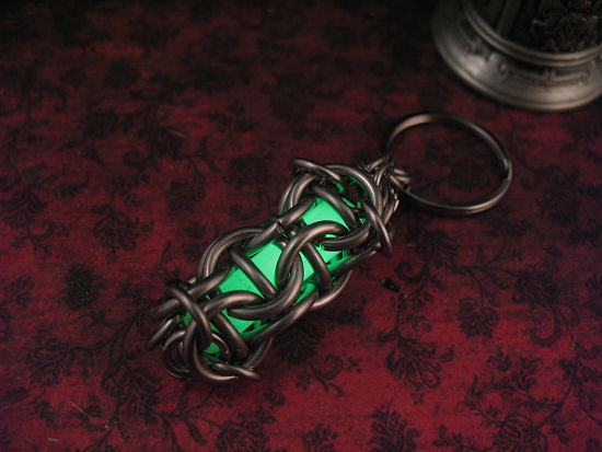 The Key Chain is made with Stainless Steel Rings around a Glow in the Dark cylinder.