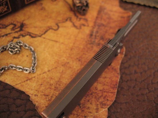 I’m pleased to offer this distinctive creation from Darriel Caston!  This is a Hand Built Baby X Flipper with a Unique Deep Relief “John Schipp” Engraved Copper Handle.