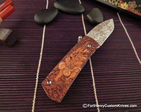 Both sides of the Thick Copper Frame have the Custom “Samurai Frog” Deep Relief Etched Pattern.