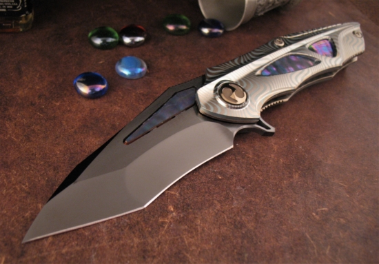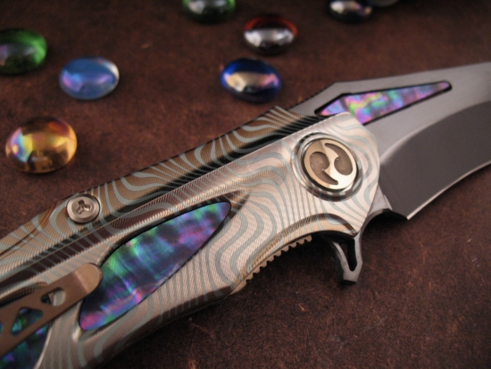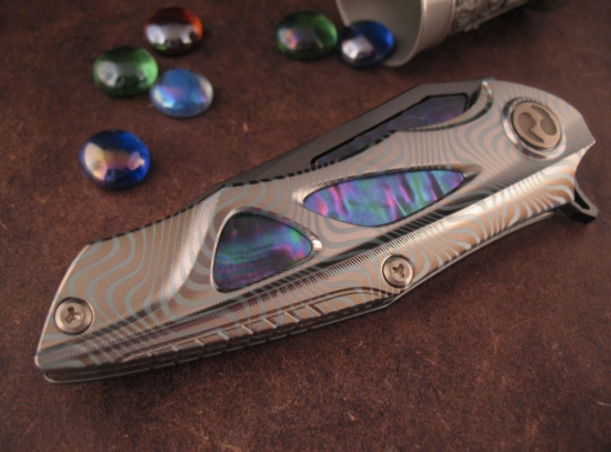 The Complicated Grinds on the Blade are especially nice. Also, the blade has an Integral Thumb Ramp with Subtle Custom Ridges. Note the Fire in the Abalone Inlays, this is all Natural and as with ALL my pictures, no Filter was used on this pic.