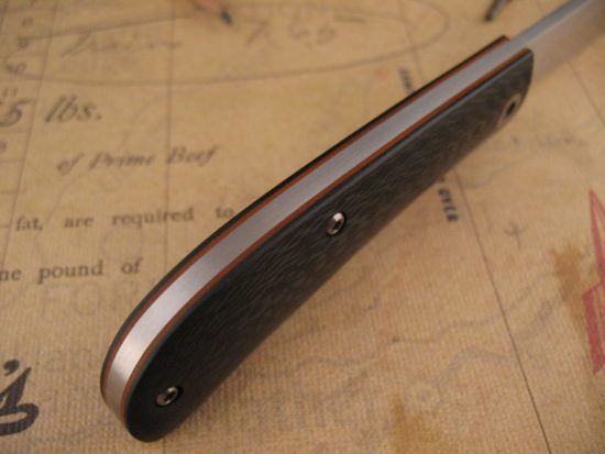 The Blade has a Labor Intensive Hand Rubbed Satin Finish and a very High Hollow Grind with Custom Swedge.