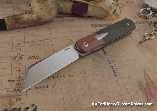 The Blade on the Pena Barlow has a Labor Intensive Hand Rubbed Satin Finish and a very High Hollow Grind with Rounded End Custom Swedge. The Blade Flies open effortlessly with just a touch of the Front Flipper!