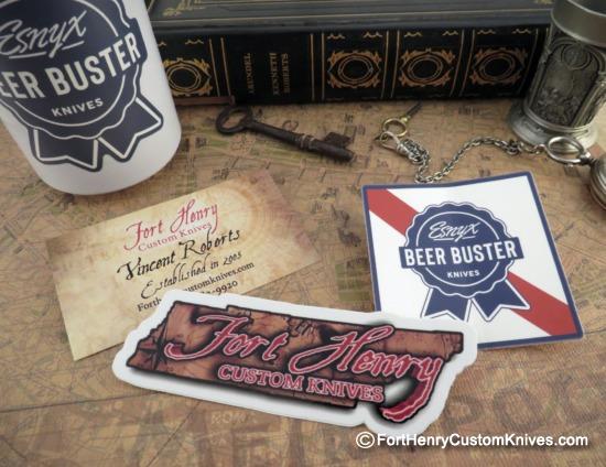 The Esnyx Beer Busters have matching 1/2 length Titanium Backspacers that create an Integral bottle opener. For those that Appreciate the Traditional Styling of a Slip Joint but also enjoy the updated, Maintenance Free Materials that such a knife can provide.