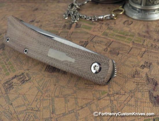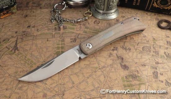 This is a very pocket friendly Front Flipper design by Esnyx available in your choice of eighter Glass Bead Blasted OD Green Micarta or Natural Micarta