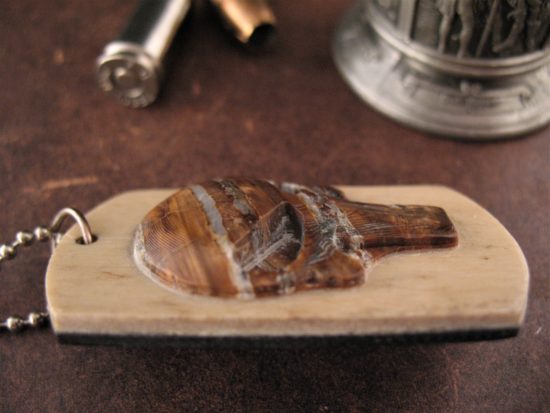 This is one Charles’ 3D Punisher Skull Dog Tags made from 20,000 year old Mammoth Bone and Mammoth Tooth!