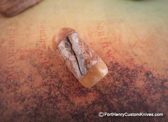 Courtney Turnage has taken his talent for Jewelry Making and combined it with his Father’s Mammoth material supply  to make some really unique pieces.  These New Mammoth Molar Lanyard Beads are for those that enjoy something very unique and I feel it would dress up any Knife it was attached to.