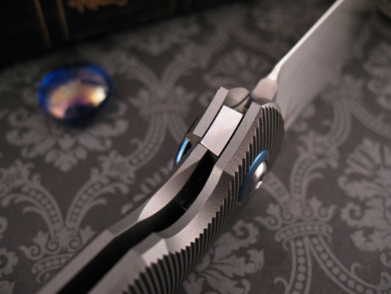 Hand Crafted from Thick, Contoured Titanium – the Frame has a Vertically Milled, Textured Surface to enhance the grip. Beautiful, Polished and Anodized Titanium Pivot Collar adds a bright spot of color.