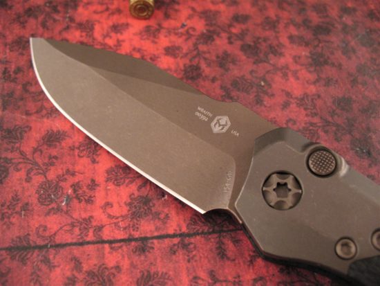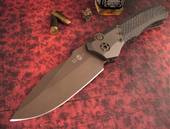 The Wraith Auto is a very versatile knife with its one piece integral main chassis and separate bolster to house the auto mechanism. Depressing the Button (which also serves as the Lock) the Blade flies open with incredible speed.