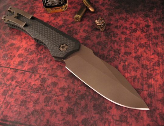 This is the New Wraith Automatic by Heretic Knives ~ this particular example has a One Piece Integral Carbon Fiber Frame and a Bronze blade, bolster and Hardware