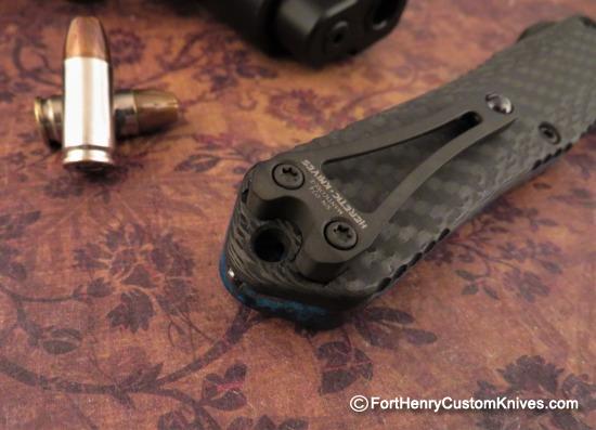 The Custom Carbon Fiber Firing Button is tall with Graduated Security Ridges and it requires a definite PUSH to Fire the Blade!