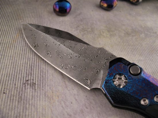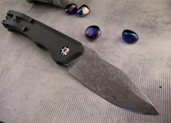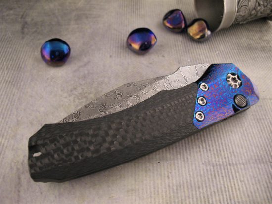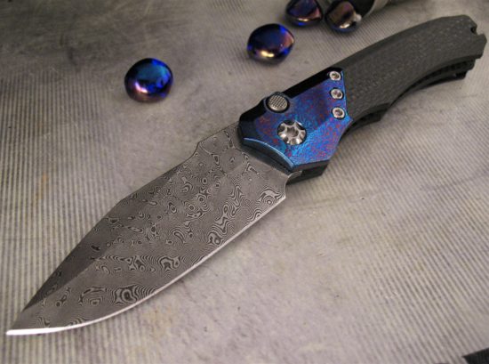 This is the New Wraith Automatic by Heretic Knives ~ this particular example has a One Piece Integral Carbon Fiber Frame, a Damtanium Bolster and a Blade Vegas Forge Damascus.