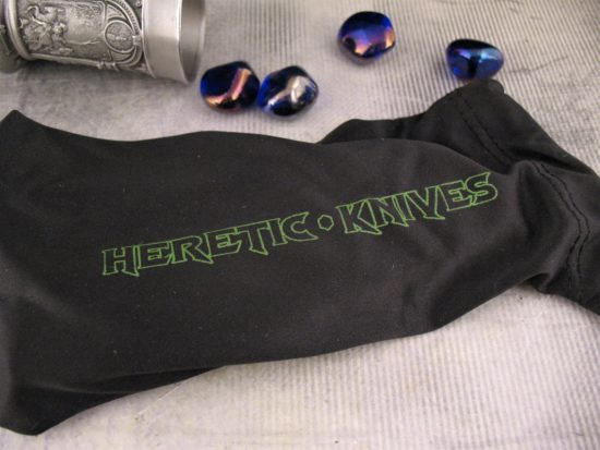Brand New with a Silk Drawstring Pouch, a Serial Numbered COA and a Presentation Box from Heretic Knives!