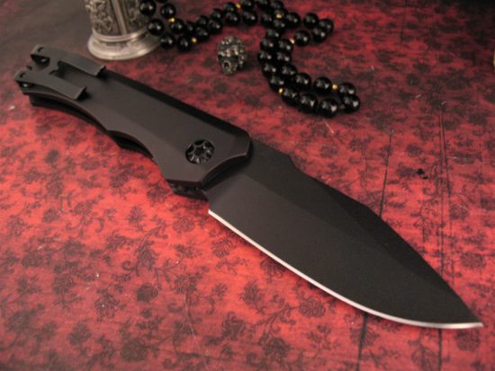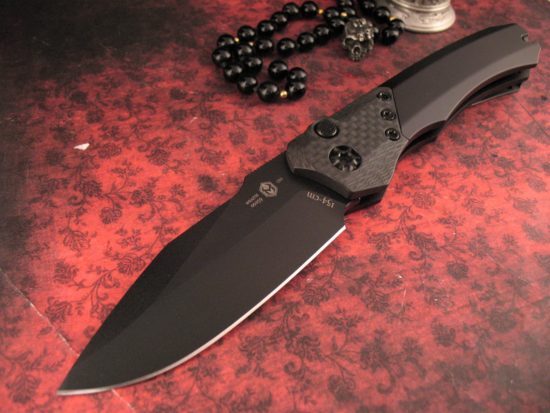 This is the New Wraith Automatic by Heretic Knives ~ this particular example has a One Piece Integral Aluminum Frame, a Carbon Fiber Bolster and a Blade in Matte Black DLC finish