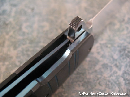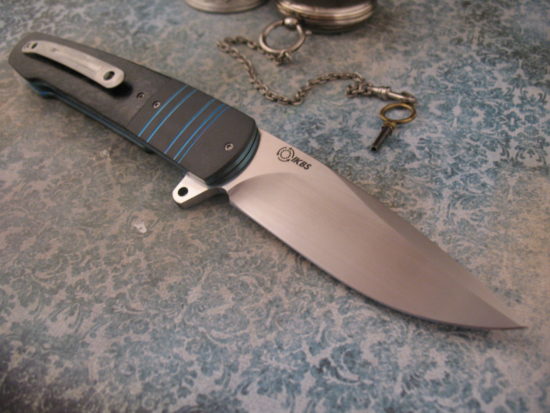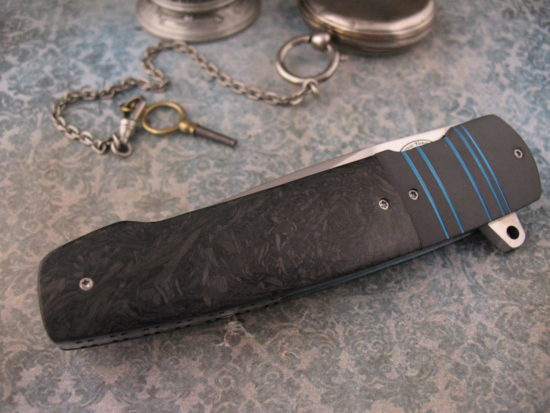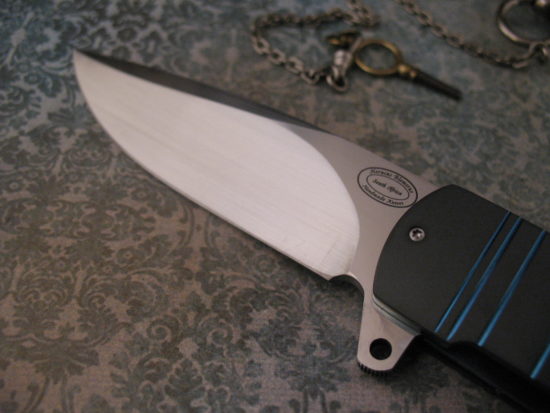 The blade was hand ground from tough N690 Stainless steel which Herucus gave a near Flawless Satin Rubbed finish. The handle is Marble Carbon Fiber and it fits with precision against the textured Zirconium bolster onlays.